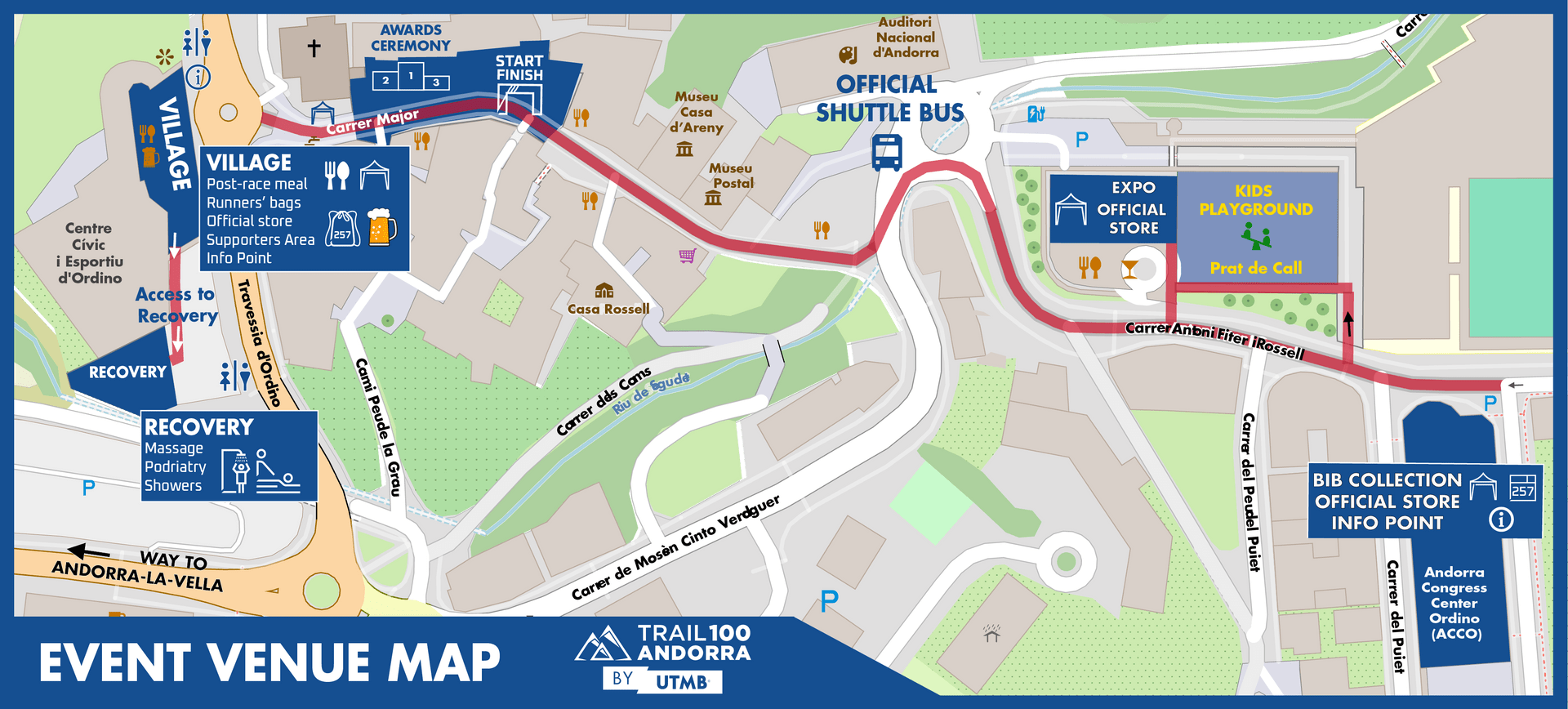 Ordino es converteix en la seu única del Trail 100 Andorra by UTMB. Per a aquesta 4a edició Ordino acollirà no sols les línies de sortida i meta, sinó també la zona d'inscripció (anteriorment en la capital del país). Consulta en el següent mapa totes les ubicacions o guarda aquest mapa interactiu en el teu dispositiu.